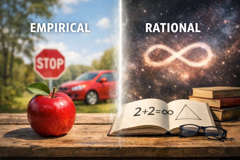 Empirical ideas describe the material world through direct experience, while rational ideas describe it indirectly by organizing, interpreting, and extending what direct experience reveals.