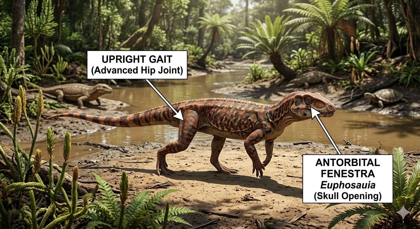 Archosauria was one of the great turning points in vertebrate evolution. Emerging in the wake of the Permian-Triassic extinction, this clade gave rise to some of the most successful animals in Earth’s history. The archosaurs eventually split into two major branches: the crocodile line, called Pseudosuchia, and the bird line, called Avemetatarsalia. That bird line later produced pterosaurs, dinosaurs, and ultimately birds, while the crocodile line produced crocodilians and a wide variety of extinct relatives.