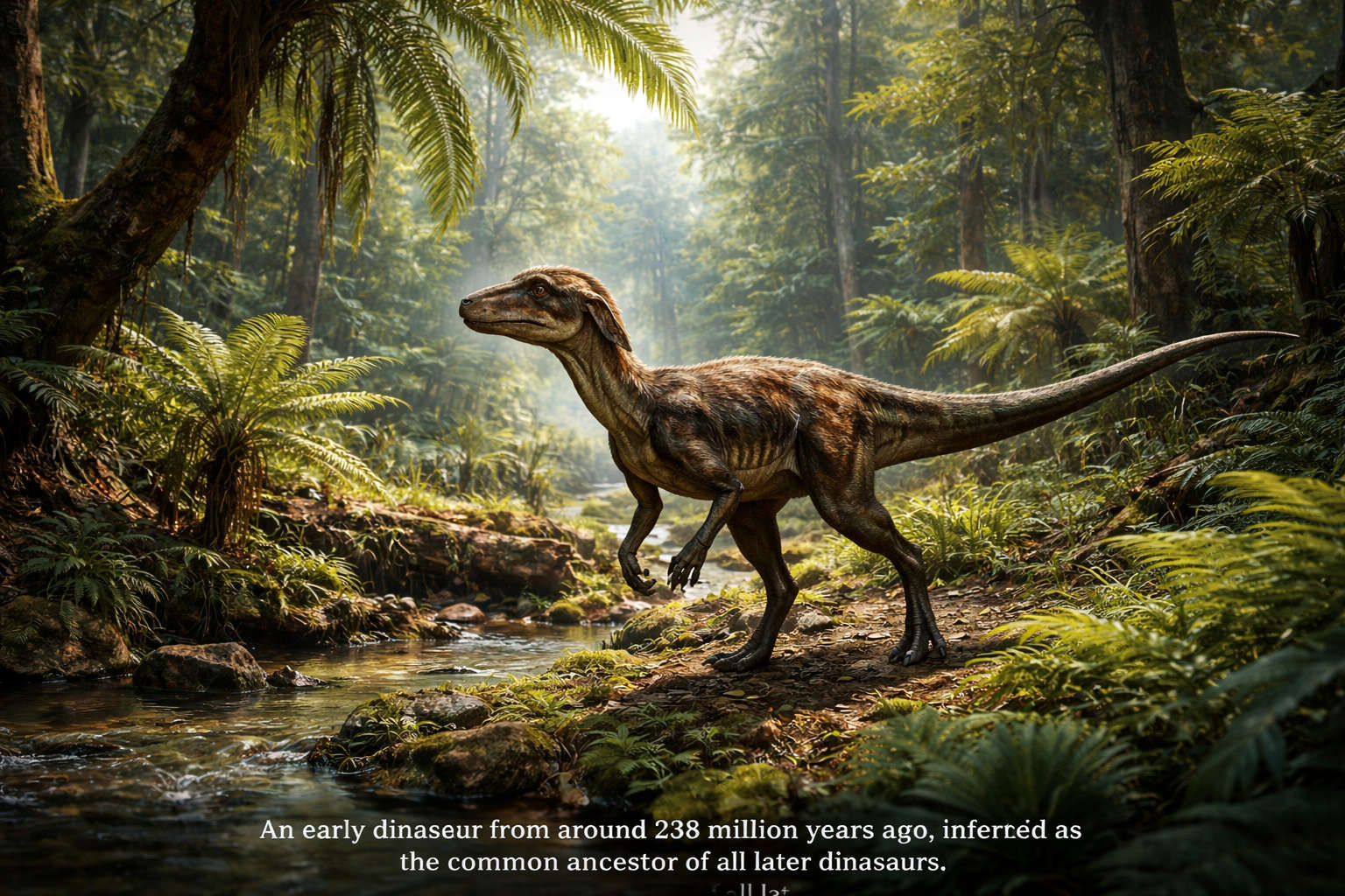 Before this point, the story belongs to the broader bird-line archosaurs rather than to true dinosaurs themselves. Earlier dinosauromorphs such as Asilisaurus lived before definitive dinosaurs and help show the gradual buildup of dinosaur traits. And beside that line, within the broader archosaur world, the pterosaurs had already split off earlier within Ornithodira, which means they were close relatives of dinosaurs but not dinosaurs themselves. So this moment in your timeline works nicely as the point where the dinosaur branch becomes distinct, after earlier archosaur experimentation but before the great dinosaur radiation is fully underway.