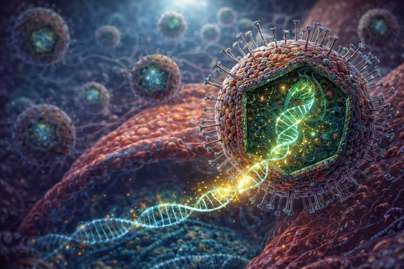 Appearing as complex eukaryotes diversified, Retroviruses evolved by equipping mobile genetic elements (retrotransposons) with “stolen” structural proteins. Using the enzyme reverse transcriptase, they flip the flow of information from RNA back into DNA, allowing them to stitch themselves permanently into the host’s genome and hide for generations.
