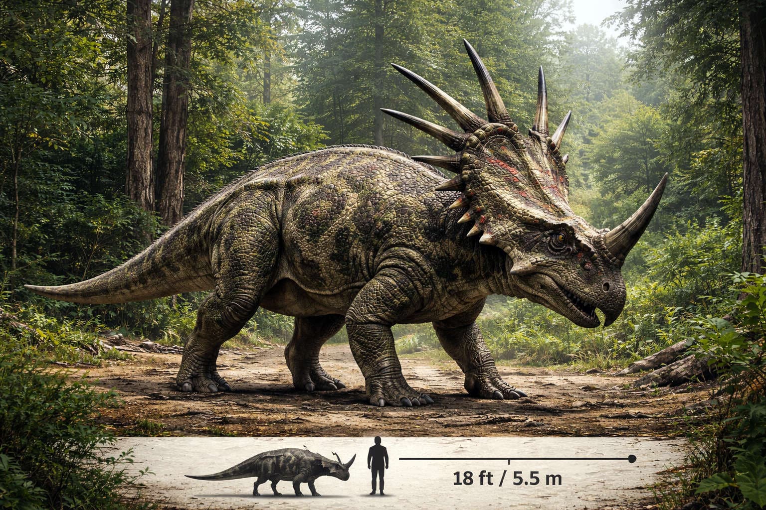 It relates to Triceratops as a close horned cousin, but not as a direct ancestor. Both were ceratopsids, yet they belonged to two different major branches within that family. Styracosaurus was a centrosaurine, a group that tended to emphasize the nose horn and elaborate frill ornamentation. Triceratops, by contrast, was a chasmosaurine, a branch better known for longer brow horns and a different frill shape. So the two dinosaurs shared the broader horned-dinosaur body plan, but they represent two distinct lines within the later ceratopsid story.