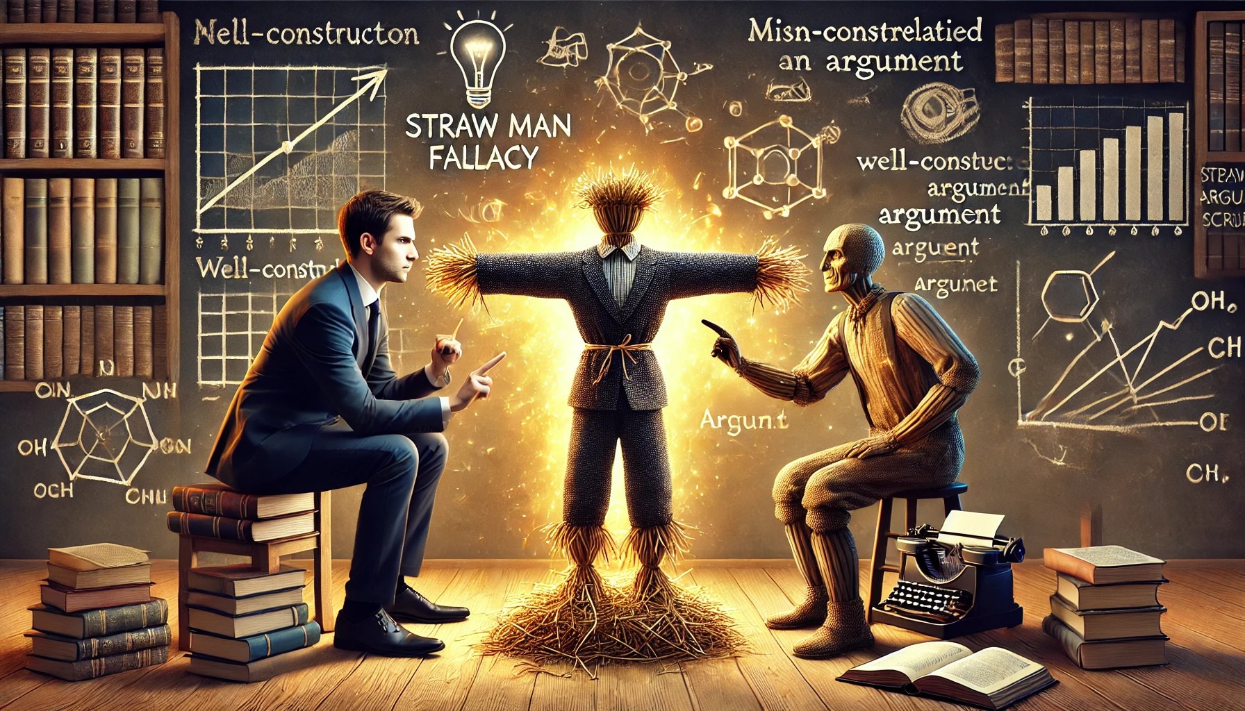 The straw man fallacy is when you disparage someone’s argument by misrepresenting it. In a way, this sly foe is not all that different from an ad hominem attack, or name-calling. It’s a deceitful tactic where one misrepresents, exaggerates, or distorts another’s argument to make it easier to attack and discredit. In a sense, they hold up a straw man version of an argument and then attack it.