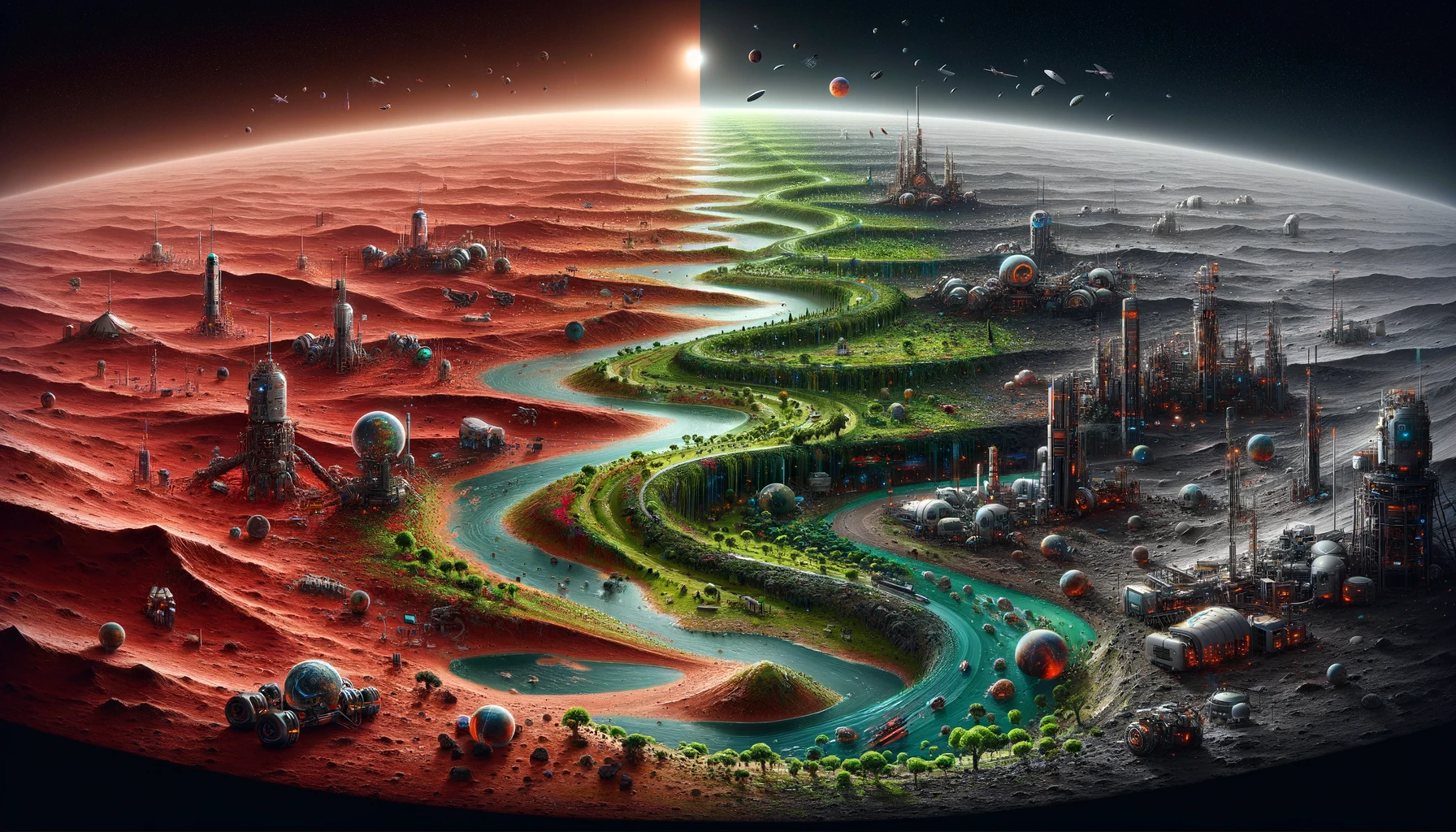 The gravity on Mars is only 38% that of Earth, meaning gases escape more easily. This means we’ll need to add an ozone layer and a magnetic field.